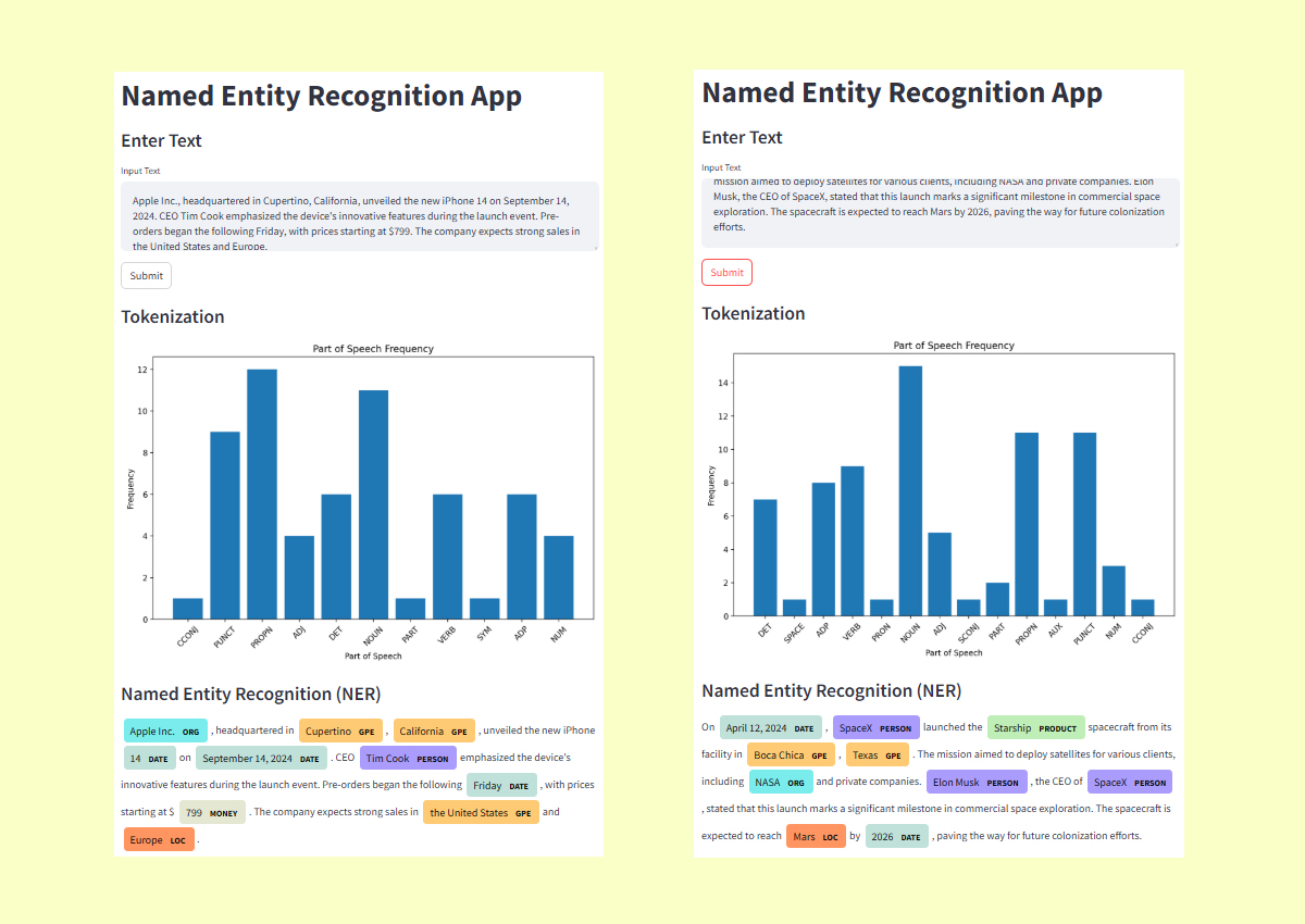 A Streamlit web app implementing Named Entity Recognition (NER) using spaCy.